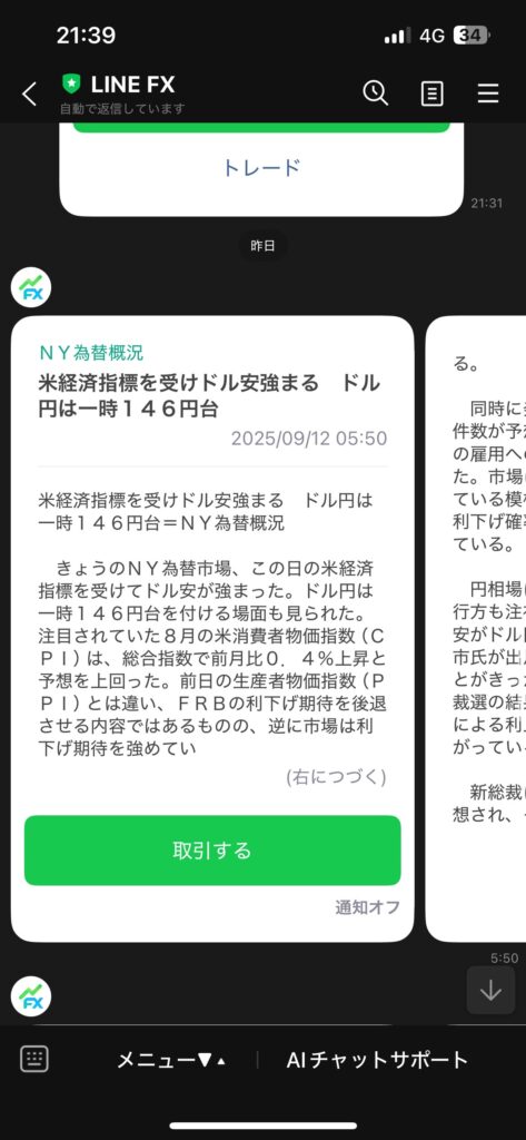 - LINE FXで重要指標に通知をセット&本日の見通しなど拝見し戦略を練る